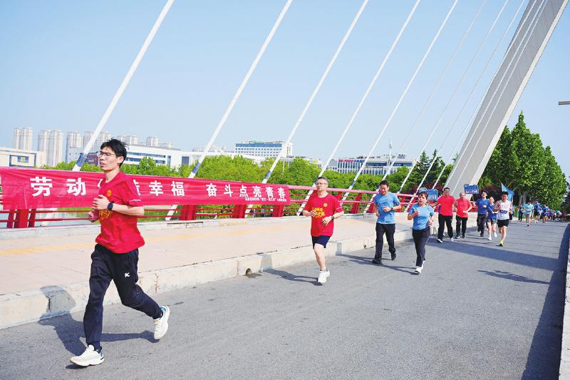 4月25日,由郑州高新区总工会主办的“劳动铸魂·青春逐梦”2026年“庆五一迎五四”主题健康跑活动在高新区天健湖公园激情开跑。活动特别邀请了该区各级劳动模范、五一劳动奖获得者及高新区大工匠等先进代表组队参与,成为赛道上一道亮丽的风景线。摄影报道/记者胡 艺