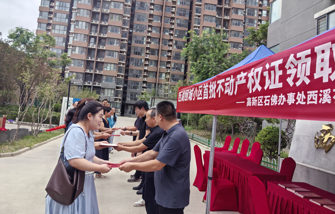 “等了八年,今天终于拿到了!心里的石头总算落地了!真的太感谢高新区管委会、感谢办事处和社区的同志们了,没有他们的坚持,不知道还要等多久。”9月10日,高新区石佛办事处西湖颐城小区首批不动产证的发放仪式在小区广场举行,张女士作为居民代表之一喜悦之情溢于言表。
