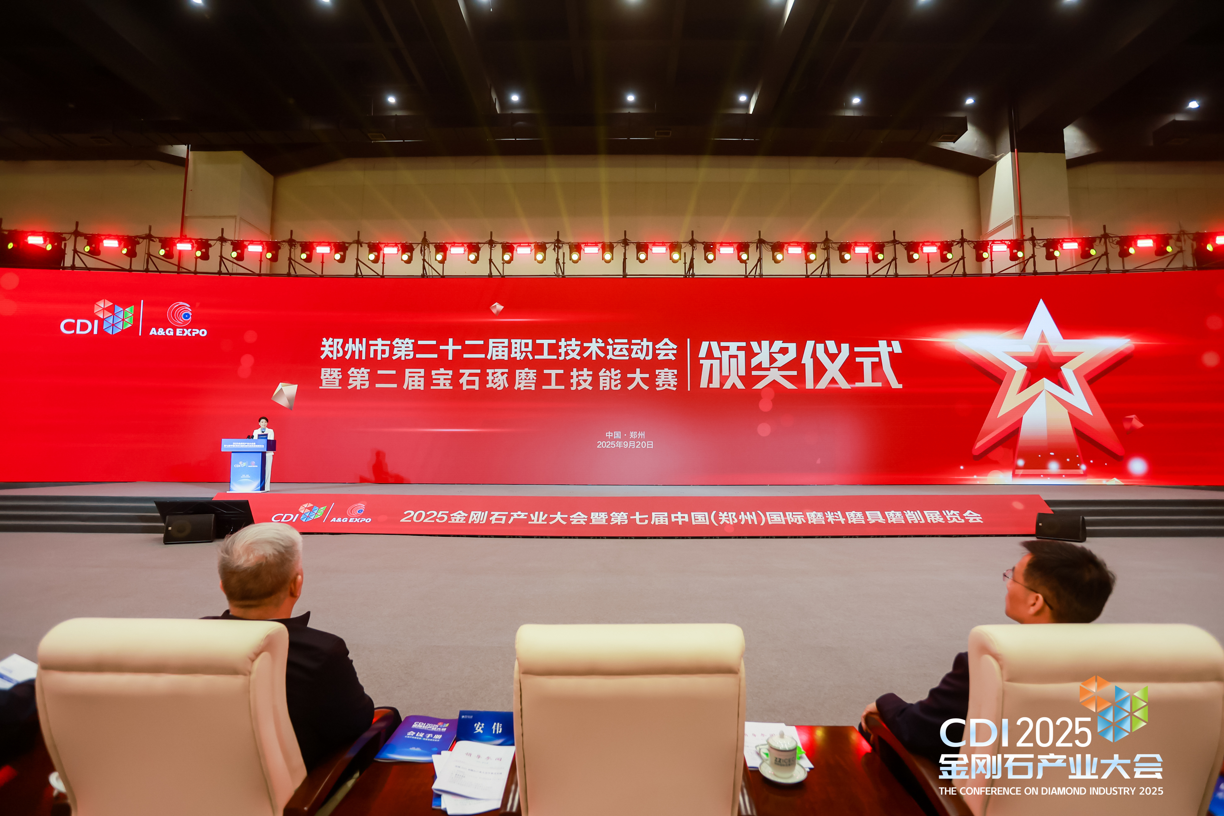 9月20日上午,在郑州国际会展中心一楼F馆举行郑州市第二十二届职工技术运动会暨第二届宝石琢磨工技能大赛颁奖仪式。仪式以“匠心传承 技耀中原”为主题,对来自郑州、南阳、商丘、许昌四地市共15名获奖选手进行了表彰。