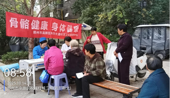 为让辖区居民在 "家门口" 接受到贴心精准的健康服务,提升居民对骨骼健康的重视,10月14日上午,郑州高新区梧桐办事处祝福社区携手高新区科学大道社区卫生服务中心家庭医生团队开展“骨骼健康,身体健康”为主题的义诊活动,以实际行动为居民的骨骼健康添动力。