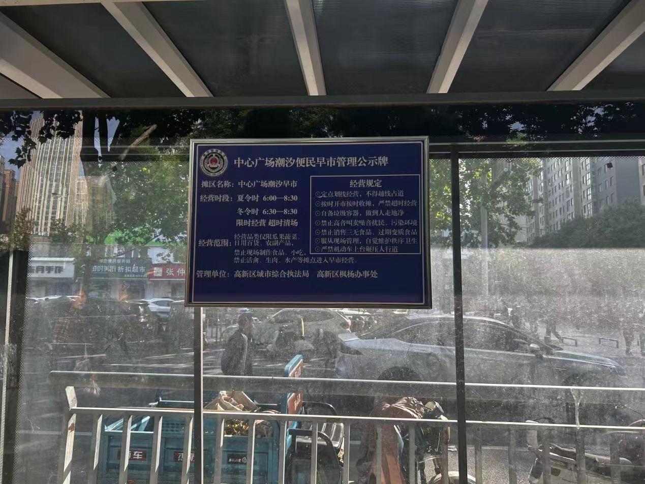 二十几天前,高新区城市管理部联合枫杨办事处,决定改变思路:从“堵”变“疏”,从“强制清理”变“规范引导”。利用广场早晨闲置时段,设立全市首个“潮汐便民早市”,将原本无序的散户纳入统一管理。