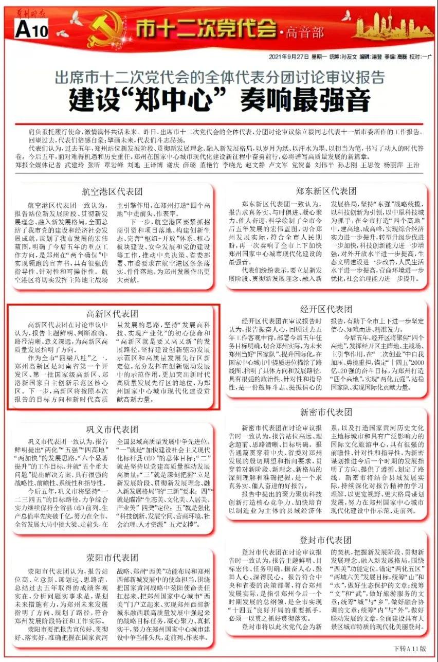 作为全市“四梁八柱”之一,郑州高新区是河南省第一个开发区、第一批国家级高新区、郑洛新国家自主创新示范区核心区。下一步,高新区将按照本次报告的目标方向和新时代高质量发展的思路,坚持“发展高科技、实现产业化”的初心使命和“高新区就是要又高又新”的发展路径,坚持建设创新驱动发展示范区和高质量发展先行区新定位,充分发挥在创新驱动发展中的示范作用,更加突出新时代高质量发展先行区的地位,为郑州国家中心城市现代化建设贡献高新力量。