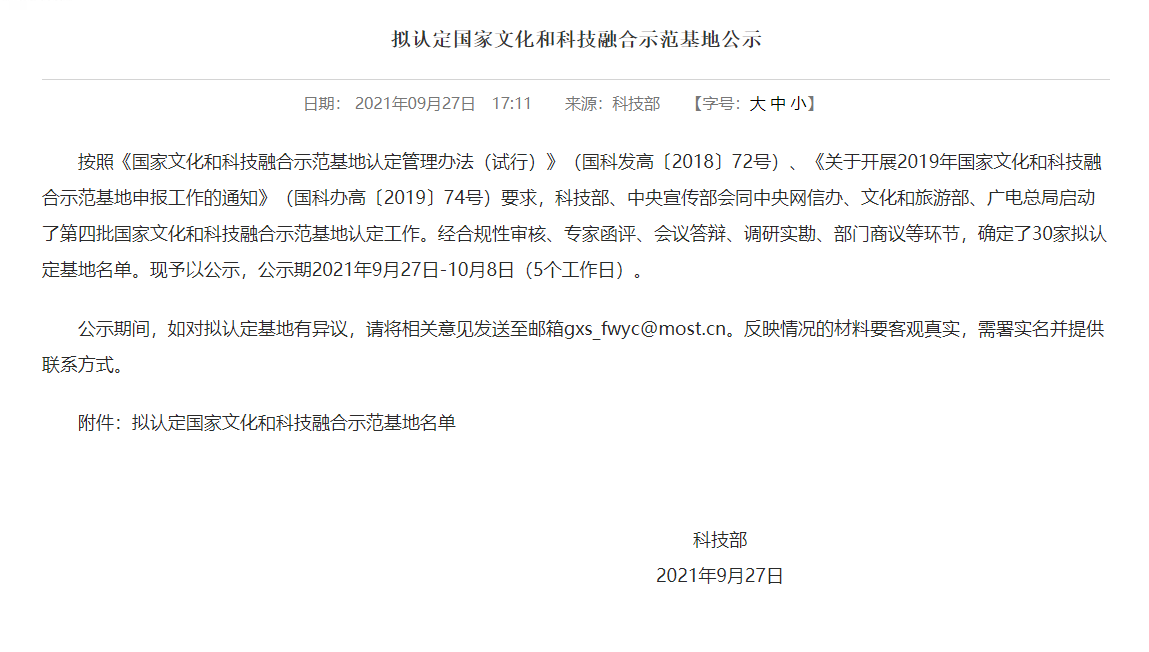 日前,科技部发布了第四批拟认定国家文化和科技融合示范基地名单(公示)。作为河南省推荐的唯一一家集聚类基地,郑州高新区国家文化和科技融合示范基地成功入选。