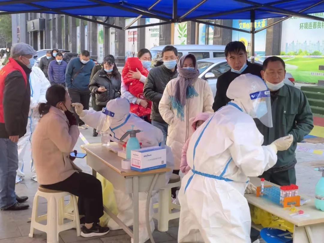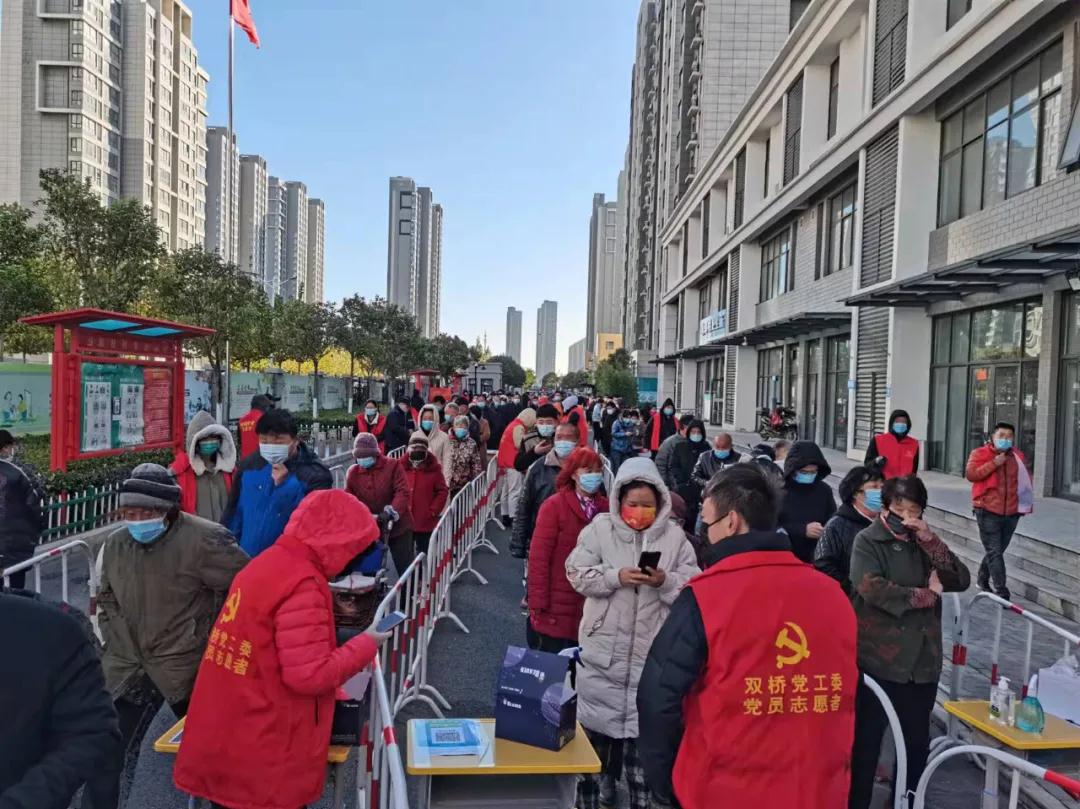 ▲双桥办事处各个村(社区)的工作人员、志愿者守候在各个检测采样点,为前来做核酸检测的居民提供帮助、答疑解惑。