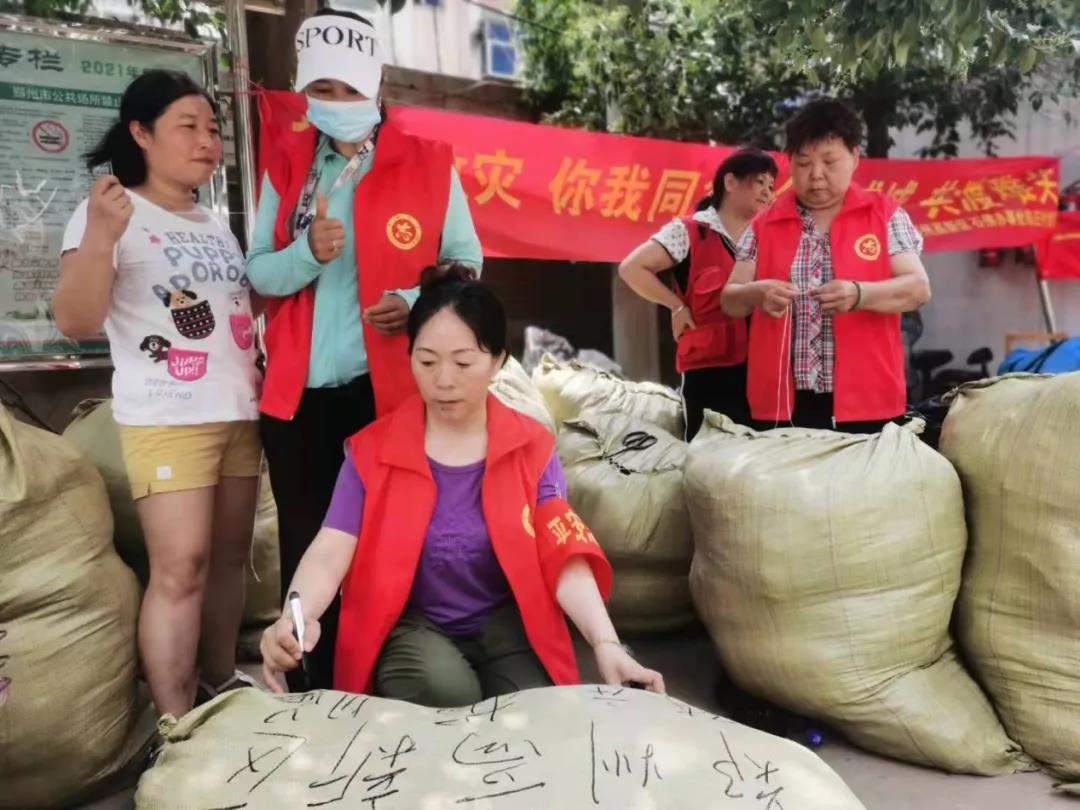 ▲“720”暴雨期间,她积极主动捐献衣物,解决受困群众的燃眉之急(图中紫色衣服为赵玉珍)