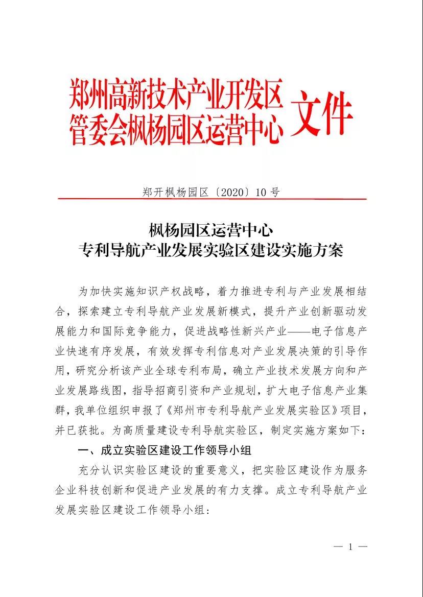 2019年11月,枫杨园区获批郑州市第一批专利导航产业发展实验区建设项目,通过对辖区内企业专利数据进行初步分析,结合高新区产业定位,选定智能传感器行业开展细分领域关键技术导航,紧扣企业的实际需求,以取得实效为目标,通过“导研发,导布局,导生产,导市场,导维权”,将专利信息融入企业发展的整个过程中,为企业的发展起到良好的指导和促进作用,有效提升企业专利保护、管理、运用的综合能力。