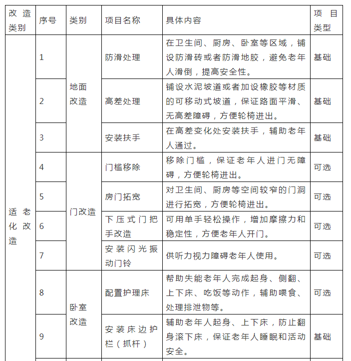 该项试点,由政府出资为困难老年人家庭提供基础类改造项目,和6个月的生活照料、膳食、清洁卫生、巡视关爱等居家养老服务,同时也鼓励支持有意愿的老年人家庭自主付费进行可选类项目的适老化改造,有效破解老年人居家养老难题,不断满足老年人多样化、多层次养老服务需求,让老年人获得感更高,幸福感更强。