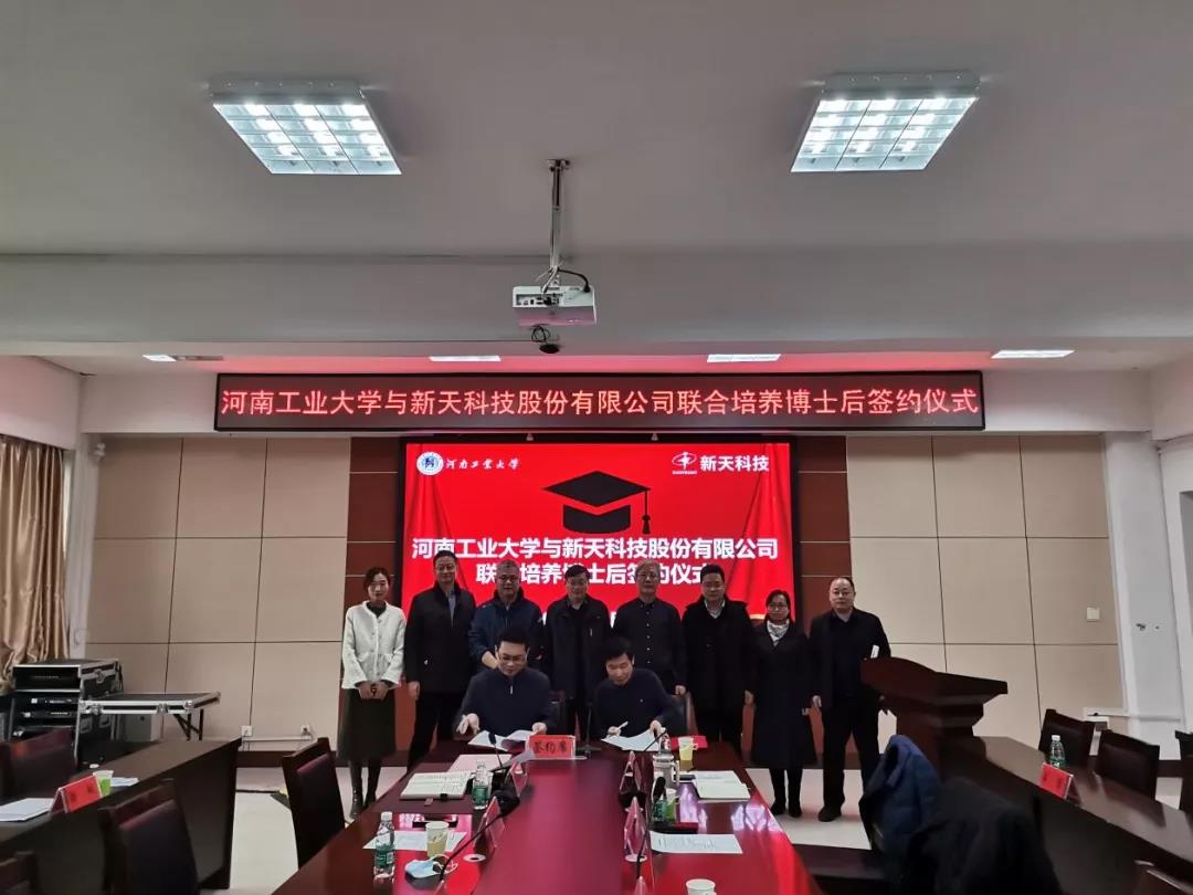 12月10日上午,河南工业大学与新天科技股份有限公司联合培养博士后签约仪式在河南工业大学举行,经高新区管委会创新协同中心牵线搭桥,双方“牵手”共建博士后工作站,共同探索人才培养新路径和资源共享,培养更多实用型人才,为产业发展提供人才支撑。