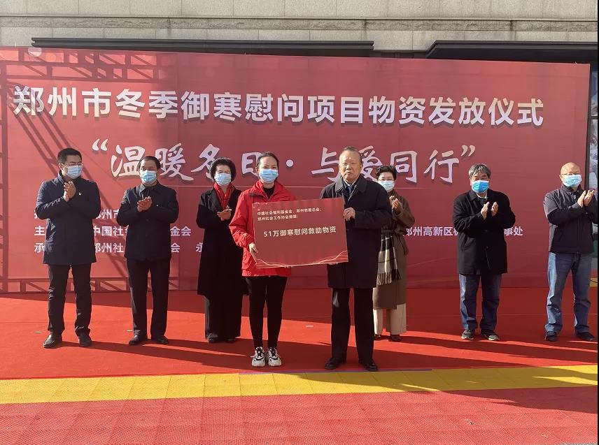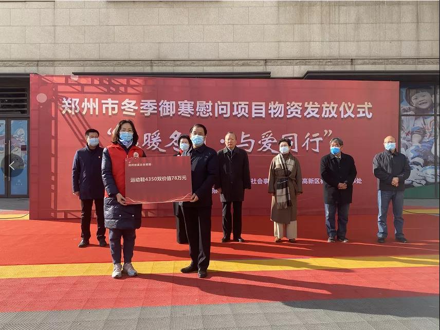 今年7月,郑州市遭遇特大洪涝灾害,居民群众遭受了巨大的财产损失。明天就是冬至,天气渐寒,为保障受灾群众、留守和困境儿童、贫困人口残疾人、高龄老人等特殊困难群体灾后生活,增强御寒能力,中国社会福利基金会捐赠53万元资金在郑州慈善总会设立2021年郑州市冬季御寒慰问救助项目,郑州慈善总会补充捐赠鸿星尔克运动鞋4350双,郑州社会工作协会作为执行方负责项目实施。经过前期的需求征集,全市35支社工志愿者队伍提交了特殊困难群众的需求信息,并于今日在高新区举办仪式正式发放,进一步改善部分受灾群众和特殊困难群众的生活状况,把党和政府、社会各界给予的温暖送到他们手上。