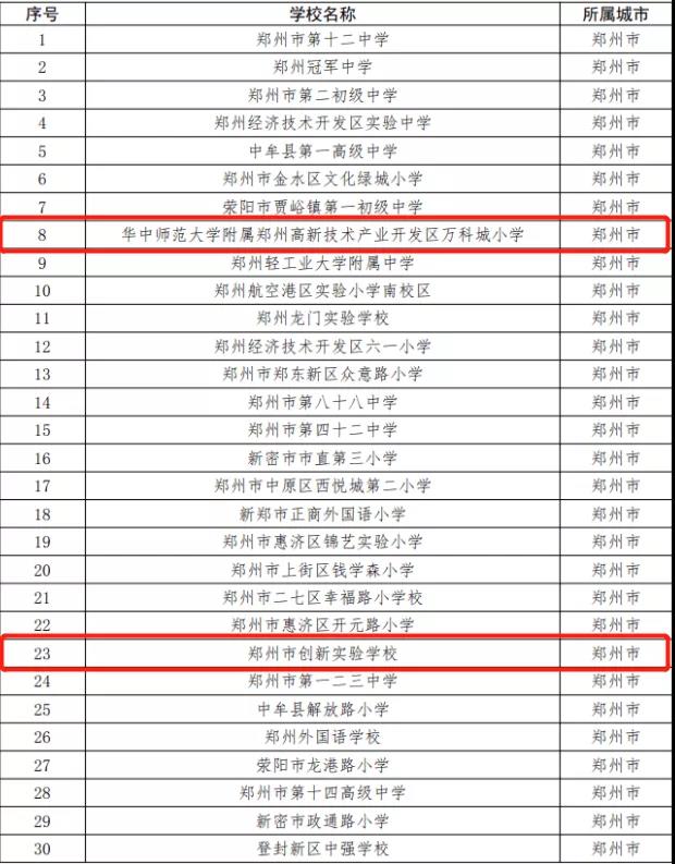 ▲河南省第三批中小学数字校园标杆校名单部分截图