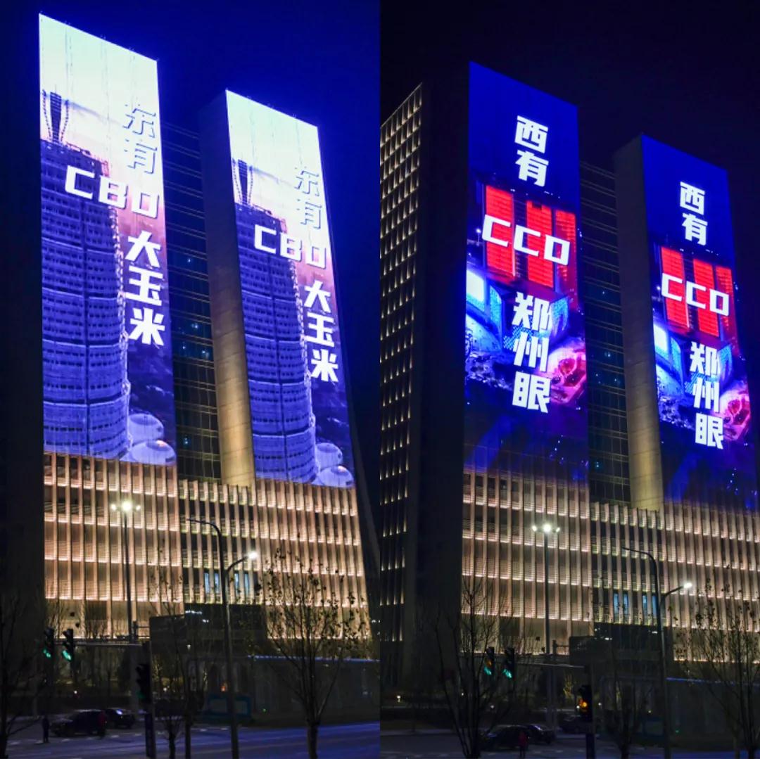 “郑州眼”创意全媒体大屏是郑州西区CCD的“郑州眼”,与东区CBD的“大玉米”一西一东遥相呼应,将成为集天地之中、国家中心城市和交通枢纽为一身的河南郑州新地标。