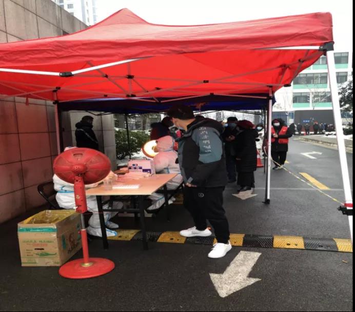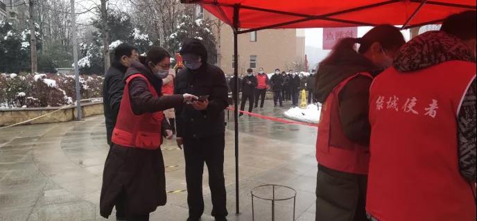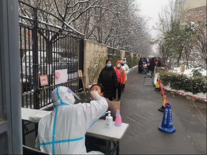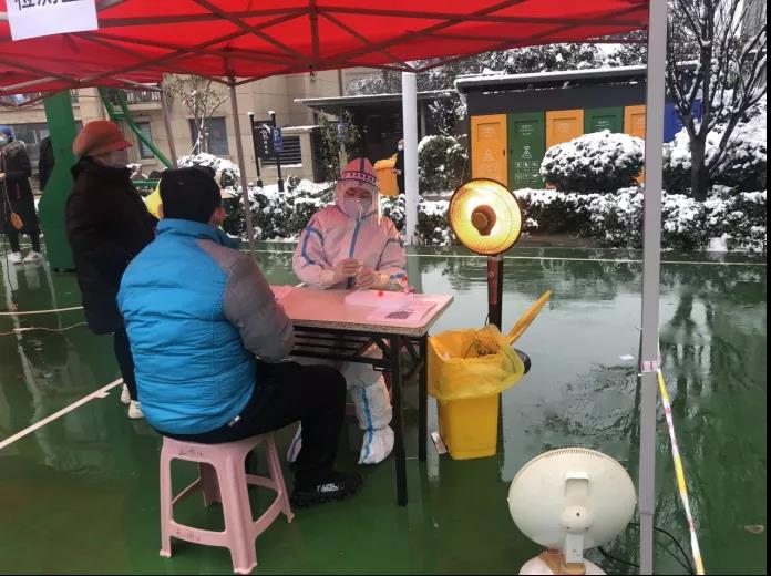 面对疫情和雪情的双重考验,枫杨办事处协同合作,保证了核酸检测的有序进行,交织的志愿红和天使白让人感觉踏实和温暖。