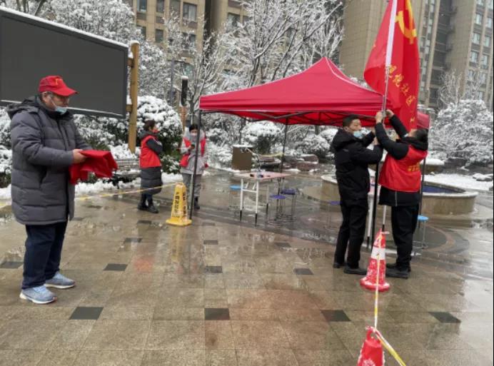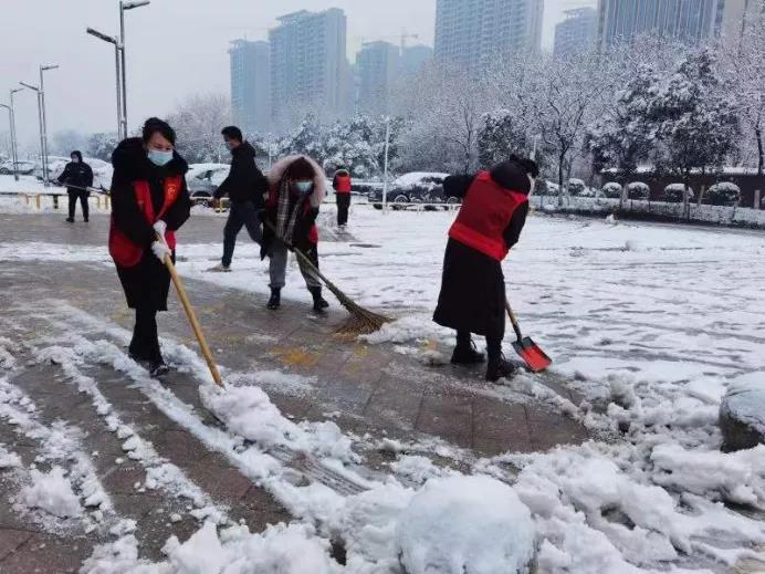 在梧桐办事处辖区各个核酸检测点,有一群可爱的“红马甲”们,他们及时清理门口积雪,保障群众安全,他们还为医护人员送去“温暖守护”。