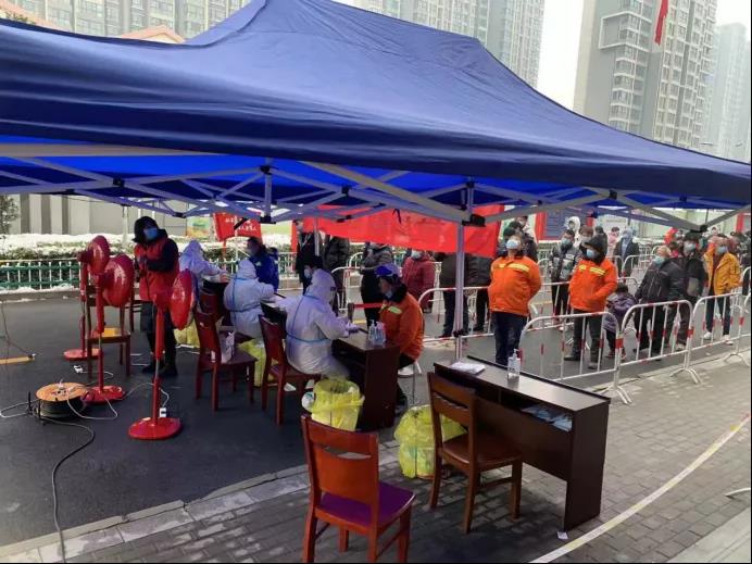 石佛办事处工作人员深入核酸检测一线,规范有序开展核酸检测。现场,“红马甲”从自己家拿来电热器放在医护人员身边,热心帮助行动不便老年人安全回家,用心为医护人员、社区居民提供温馨的服务。