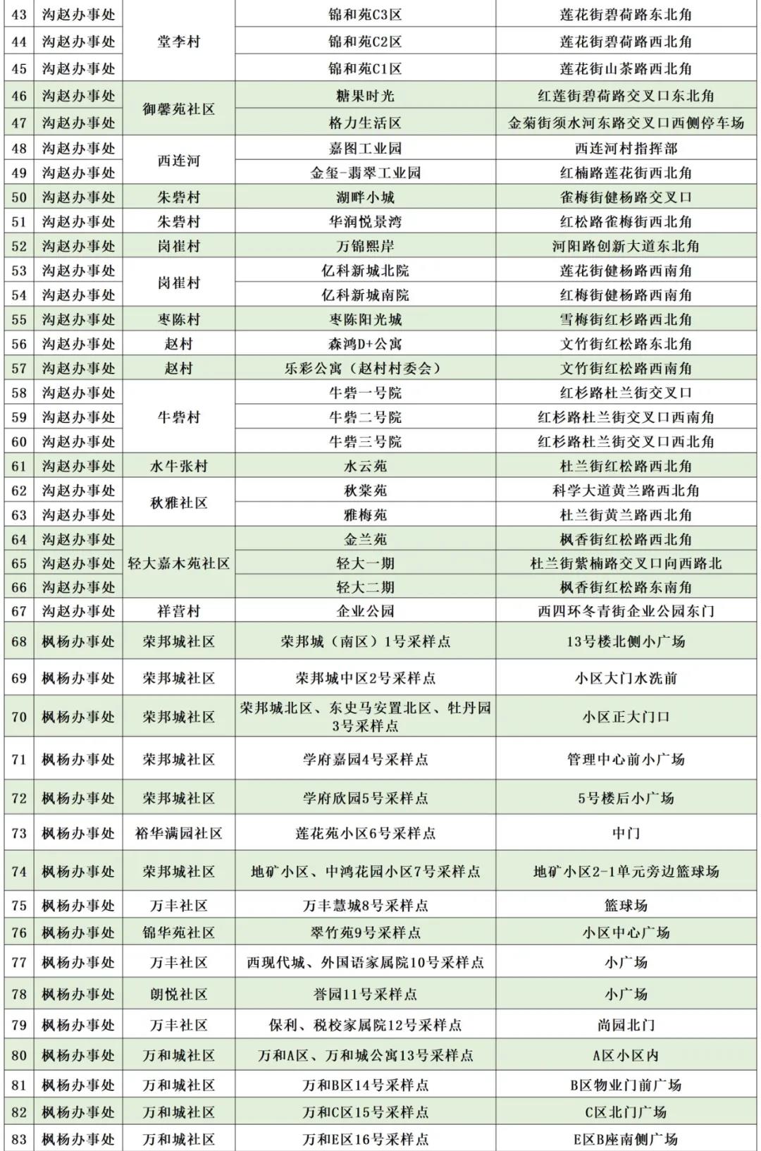 (三)全员核酸检测设置固定采样点和流动采样点,请居民按照村(社区)、小组工作人员的组织安排,原则上到居住地采样点参加采样,特殊情况向社区报备后可在工作地采样。