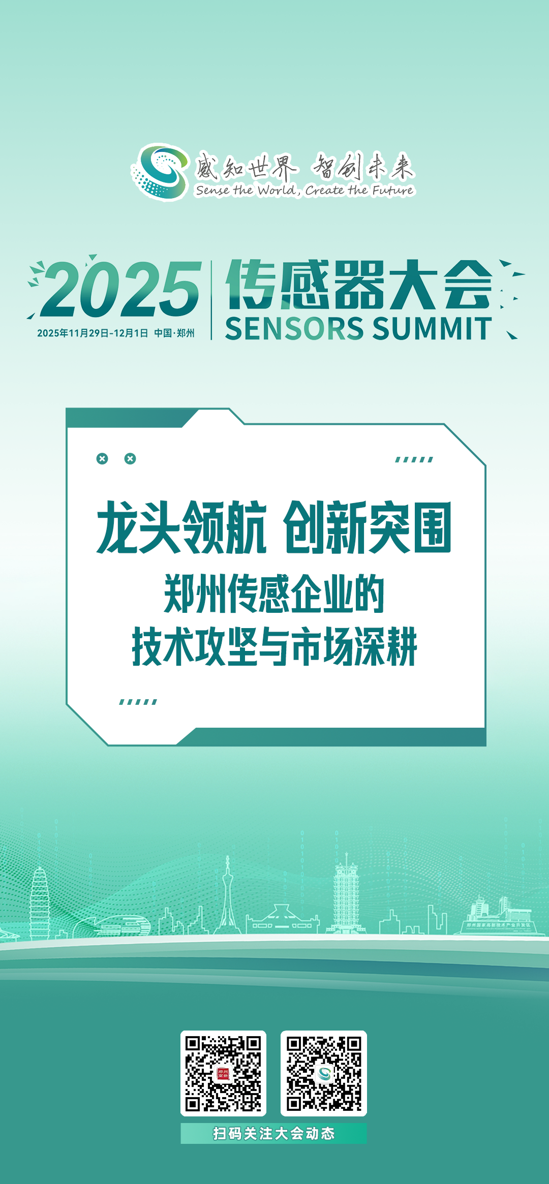 “感知世界,智创未来”——2025传感器大会将于11月29日至12月1日在郑州国际会展中心举行,这座中部城市正以“中国智能传感谷”的身份,在全球传感器版图上留下鲜明的中国印记。
