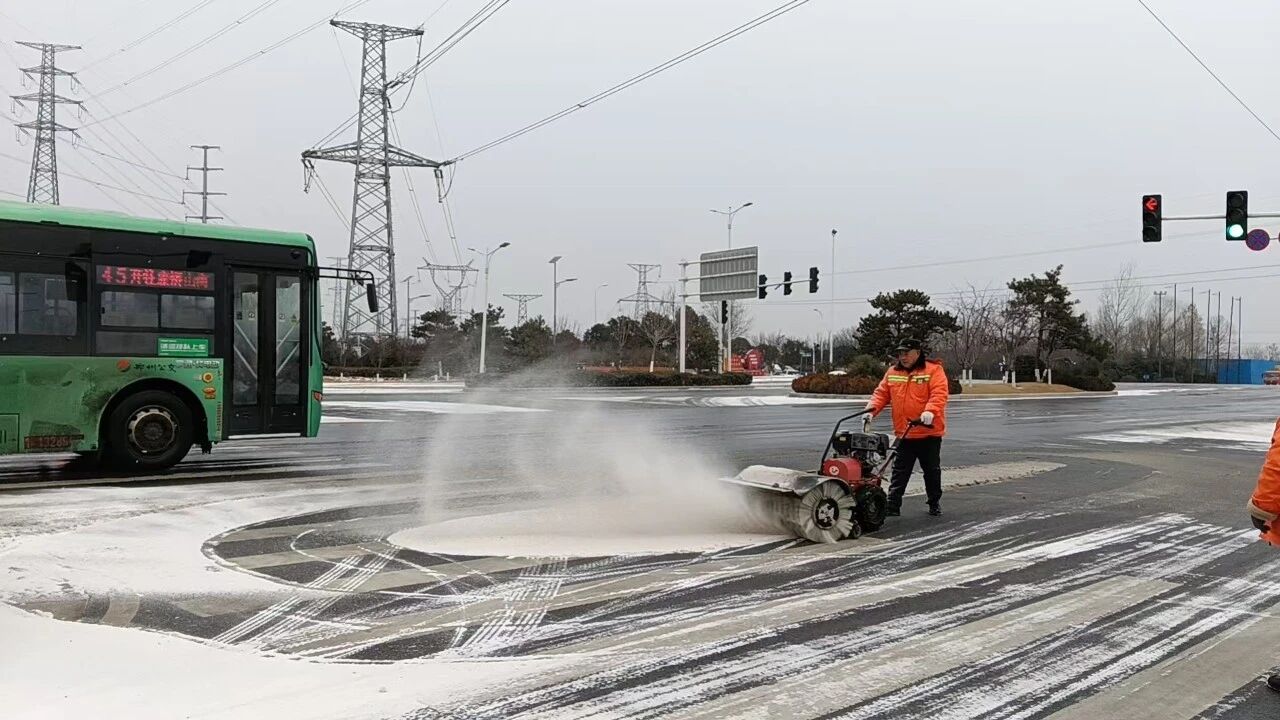 降雪期间,高新区按照郑州市除雪作业规范——“先主次干道、后支路背街 ”,确保道路通行通畅,并根据路面巡查情况,对重点路段及易结冰区域精准撒布融雪剂,防止持续低温引发道路结冰安全隐患。