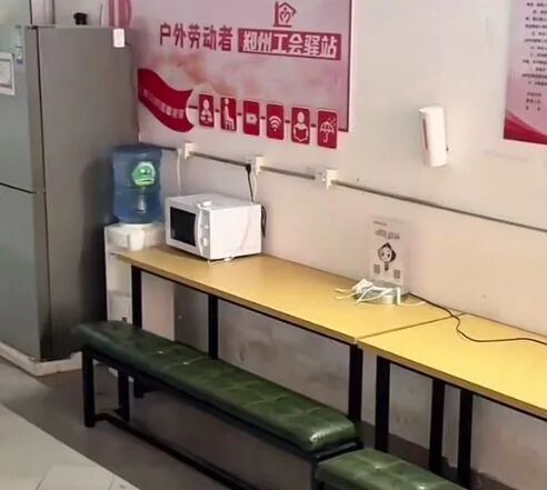 而在商场的下沉广场处,一处专为外卖小哥、出租车司机等户外劳动者打造的休息室同样暖意融融。这里不仅提供免费休息区,更配备了保鲜柜、饮水机、微波炉和充电等设施,夏日有免费冰块防暑降温,冬日能让劳动者吃上热乎饭,成为户外工作者的“避风港”。