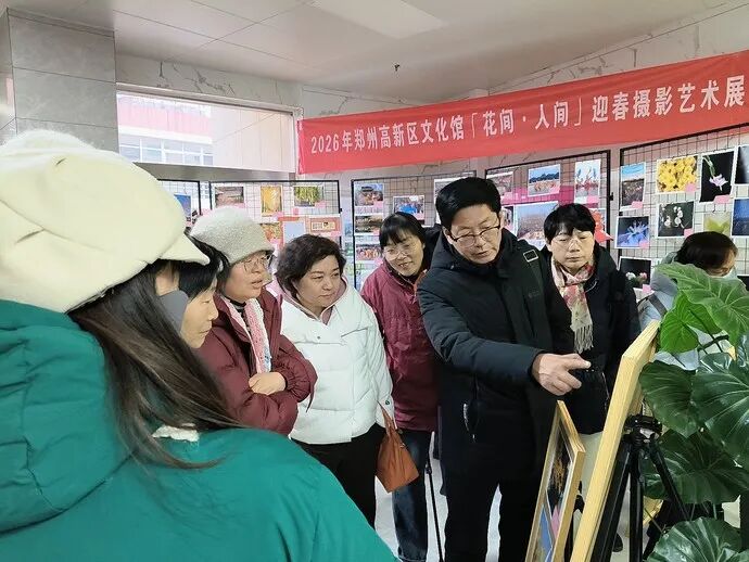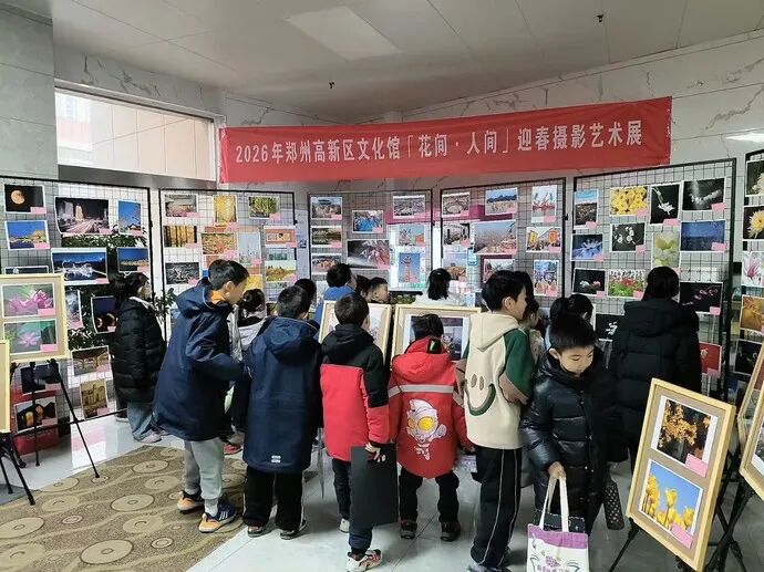 新春将至,一场洋溢年味与诗意的视觉盛宴在郑州高新区温情上演。1月18日,由高新区文化馆主办的「花间·人间」迎春摄影艺术展如约而至。展览汇集该馆摄影班师生近两百幅精选佳作,以镜头捕捉自然灵韵、人文温度与城市新颜,铺展出一幅幅生动而温暖的迎春画卷。展览首日便吸引了众多的市民驻足观赏,现场气氛热烈。