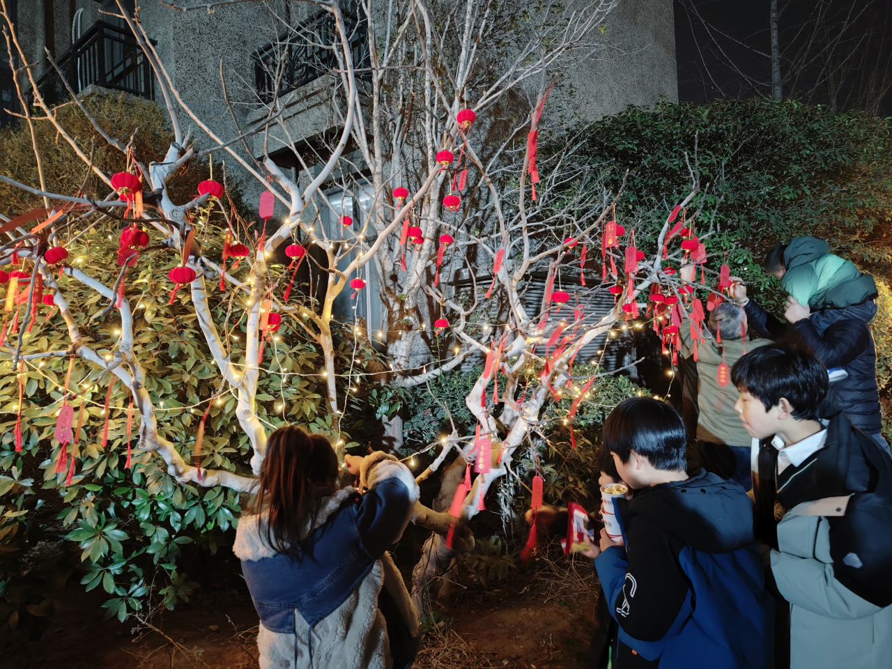 活动尚未启幕,郑州恒大城芙蓉园人工湖周边已被红灯笼与彩灯装点成璀璨秘境。居民们深知返乡后难有这般邻里相聚的机会,纷纷携家带口提早到场等候。熟悉的邻里寒暄打趣,久违的街坊热络攀谈,欢声笑语中,初春的寒意已然消散。下午6时许,热气腾腾的热橙茶、香气四溢的爆米花悉数备好,物业工作人员与社区志愿者穿梭其间,将暖心饮品与零食递到居民手中,大人孩童笑意盈盈,满心期待活动开启。