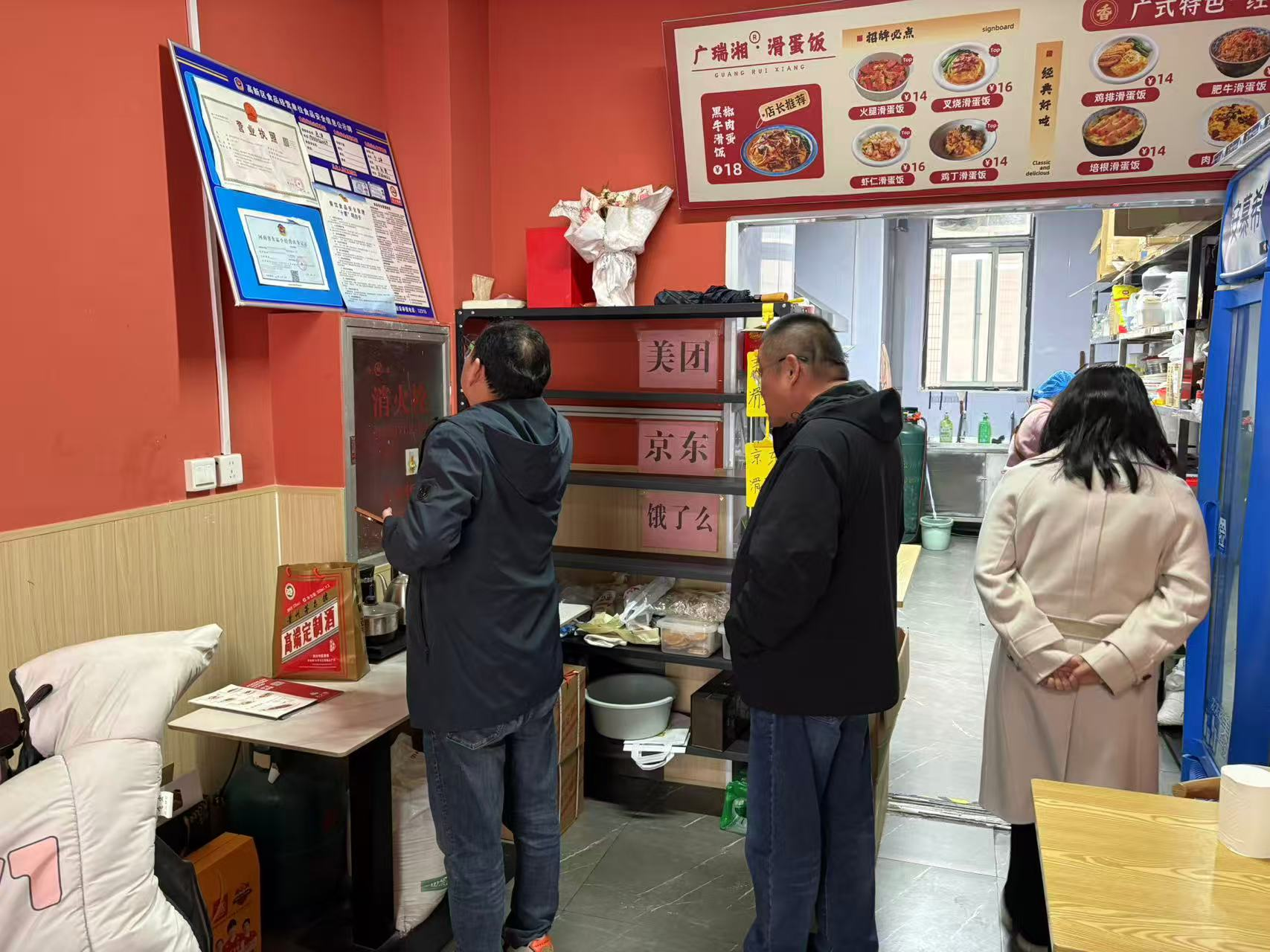 “四不两直”突击检查。3月份,联合暗访组不发通知、直奔万达金街等投诉多发街区,重点检查证照公示、后厨卫生及“阴阳厨房”(线上展示与实际经营不符)等顽疾。