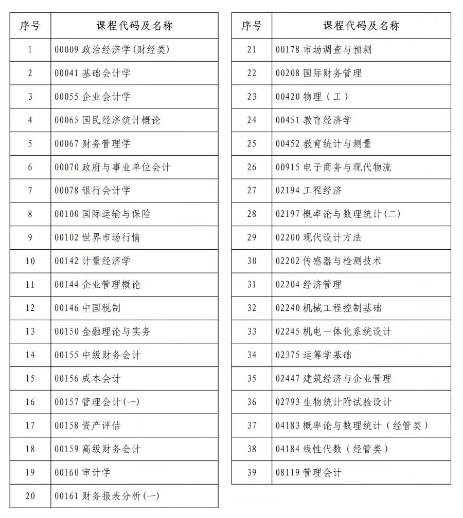 3.本次考试有39门课程允许使用不带存储功能的计算器,为方便考生提前准备,列表如下: